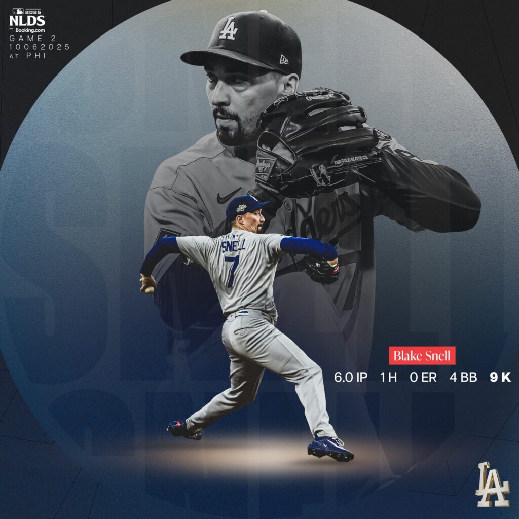 ドジャースのブレイク・スネルは6回1安打無失点、9奪三振の圧巻投球。