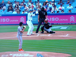 特に大谷翔平選手の打席では、バックネット裏に漢字やカタカナの文字が並び、まるで日本の球場のように見えることもあります。