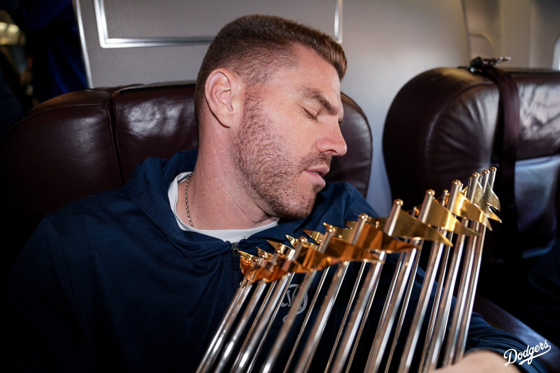 フリーマンがチームの祝賀ムードの中で身長195cm・体重100kgという“巨体”ながらも軽快な動きを見せたことが、SNS上で話題になりました。