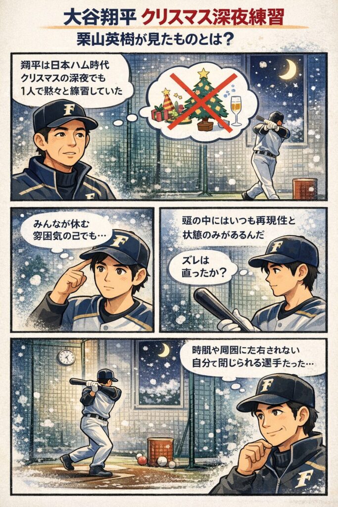 栗山英樹氏が番組や講演、取材などで触れてきたとされる「クリスマスの深夜帯まで一人で練習していた」回想は、特別な覚悟の演出として語られているわけではありません。