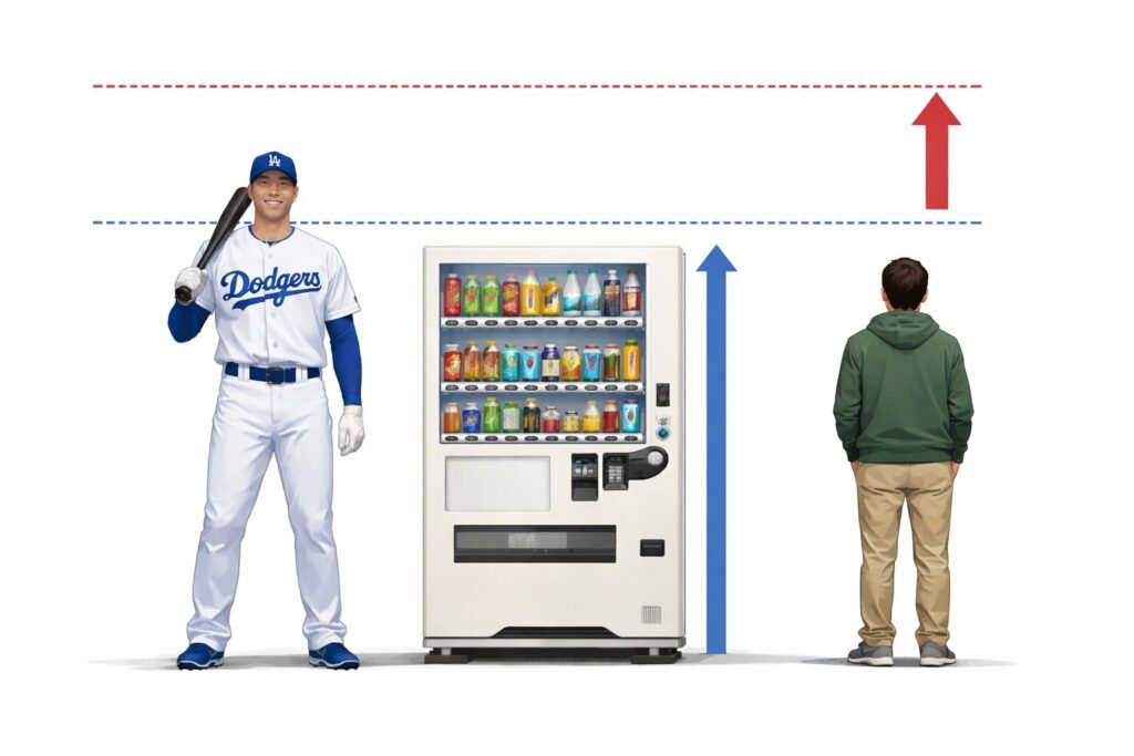 次に大谷選手を見るときは「自販機より10cm高い」という物差しで、体格の凄さをリアルに感じてみてください。