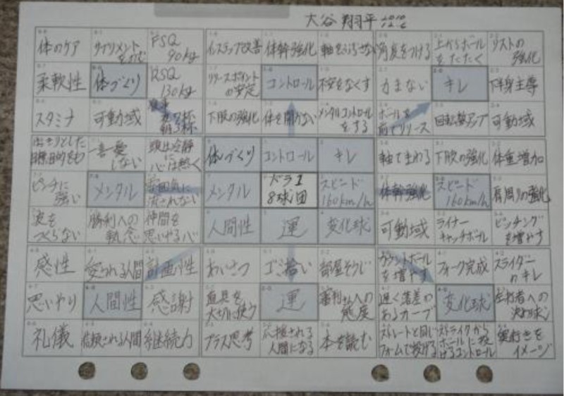 有名なのが、花巻東高校時代に作成した「夢ノート」や「マンダラチャート」です。