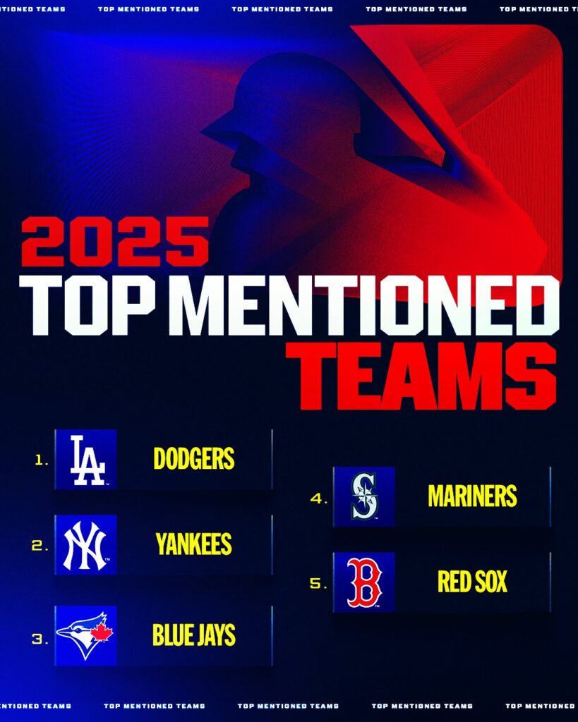 2025年の「最も言及された選手&チーム」のダブル1位は、ドジャース17番が“個人”を超え、“グローバルブランド”として機能している証拠と言っても過言ではありません。