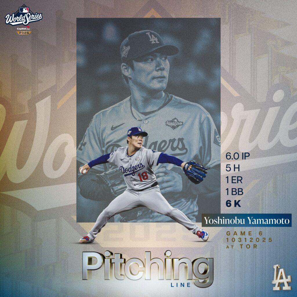 この“崖っぷち”のマウンドを6回1失点で切り抜けた山本由伸投手の姿は、まさに勝利への執念と冷静な投球術の融合でした。