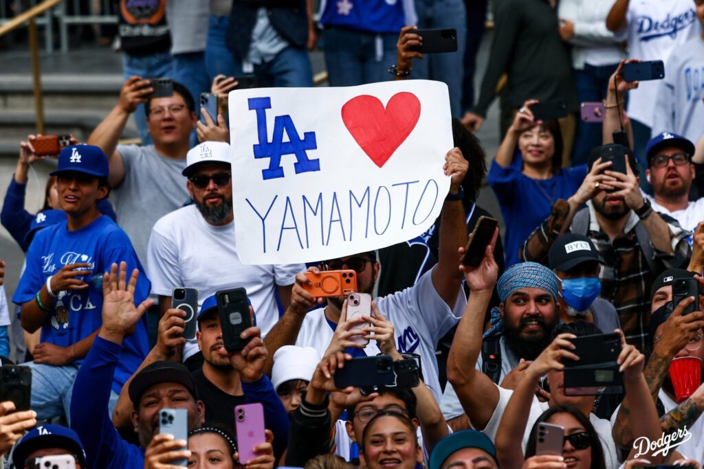 満員の観客が見守る中、山本は両手を広げてファンの歓声に応え、「MVPコール」に加え「ヤマ!」「ヨシ!」といった日本語のコールが混じり、スタジアムは大興奮に包まれました。